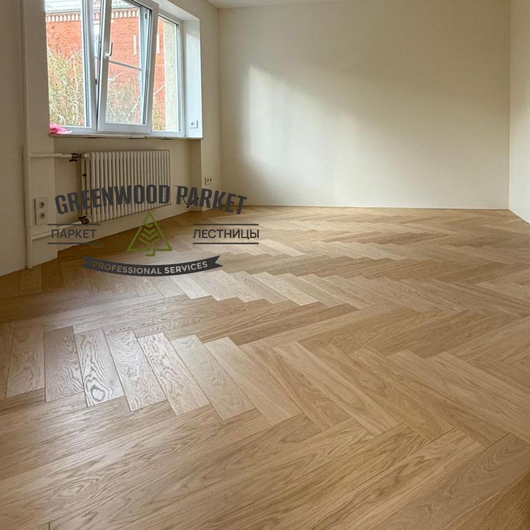 Укладка «Английская ёлка» — классика, которая никогда не выходит из моды и визуально удлиняет помещение.