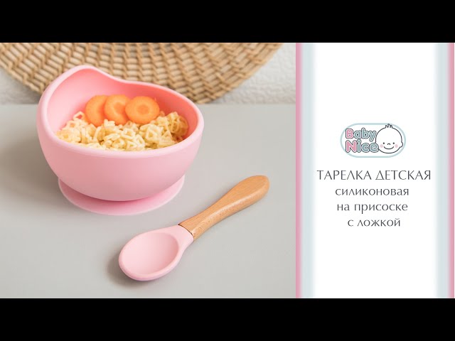 Комплект детской посуды из силикона тарелка на присоске с ложкой от компании "ОТК", ТМ "Baby Nice", г. Москва.