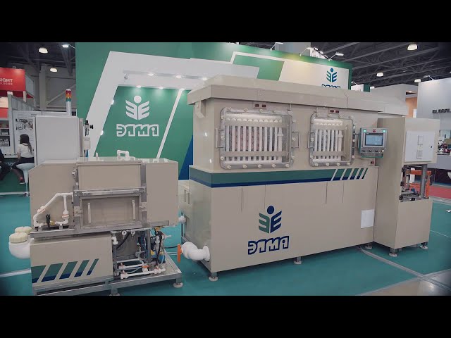 Отличительной особенностью является вертикальный способ расположения и перемещения печатной платы в установке исключающий эффект «лужи» и обеспечивающий одинаковые условия обработки обеих сторон печатной платы.