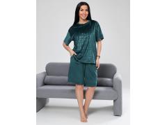 Пижама из двух предметов: рубашки и шорт. Рубашка выполнена с английским воротником и короткими рукавами, застёгивается на пуговицы. Шорты свободного кроя на эластичной резинке обеспечивают комфортную посадку. Подходит для сна и отдыха, легко стирается и не требует глажки. Состав ткани уточняется при заказе.