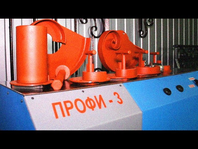 Кузнечный станок "ПРОФИ-3" позволяет изготавливать широкую номенклатуру изделий художественного декора из профильной трубы и полнотелого металлопроката по технологии «холодной» и «горячей» ковки. Станок используются для изготовления: оград, лестниц, оконных решеток, ворот, декоративной продукции для сада и многого другого.