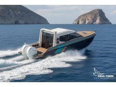 Для удобства обслуживания используется подвесная установка силовых агрегатов до 800 л/с , особо любителям скорости от 1140-1800 л/с.. Если эксплуатация на море (соленая вода) и для лучшей звукоизоляции остановите выбор на стационарных двигателях. Кабина может быть закрытого и открытого типа, с люком и без люка.