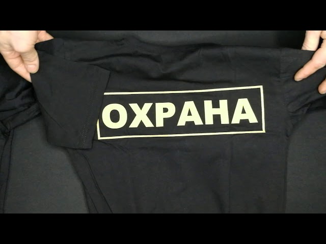Надпись Охрана на спине и на груди футболки, нанесена методом шелкографии в ДВА ПРОКАТА. Благодаря качественному логотипу, футболка долгое время сохраняет презентабельный внешний вид и носится очень долго, чего далеко не всегда удаётся достичь при других видах печати.