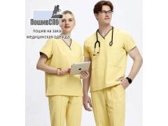 Мужской хирургический костюм с джоггерами в классическом исполнении от бренда Doctor Big состоит из прямого топа и свободных брюк.