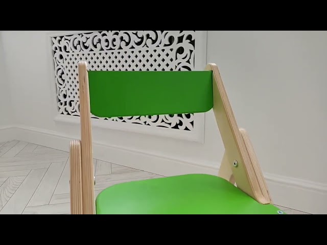 Столешница и сидение стульчика покрыты эмалью, а ножки лаком. Все детали соединяются евровинтами и мебельной стяжкой, имбусовый ключ (шестигранник) идет в комплекте.