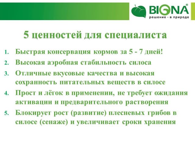 Способствует быстрой консервации кормов – за 10-16 дней;